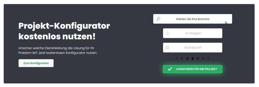 Das Ziel deiner Website sind Leads? Dann stell genau das in den Fokus deiner Website! Zeige den Projektkonfigurator an prominenter Stelle, da er DAS zentrale Element ist. Hol ihn auf deiner Startseite deutlich weiter nach oben, denn die Leute scrollen einfach ungern weit nach unten.