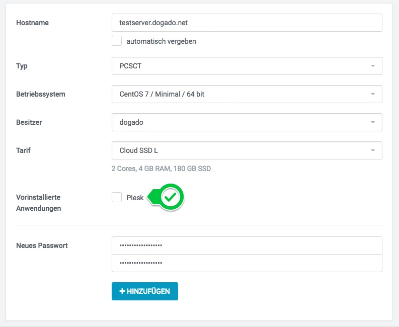 Aktiviere für beide Optionen einfach im CloudPit die Checkbox “Plesk”. Nach erfolgreicher Installation erreichst du dein Plesk dann unter: https://-deine IP-:8443