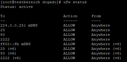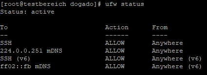 Ihr könnt mittels folgenden Befehls euch den Status anzeigen lassen. So erfahrt ihr, ob ufw aktiviert ist und welche Regeln aktuell aktiv sind.