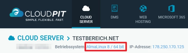 Im ersten Schritt wollen wir auf unseren vServer CentOS 8 64 bit installieren. Dazu geht ihr auf folgende Webseite: https://cloudpit.io/