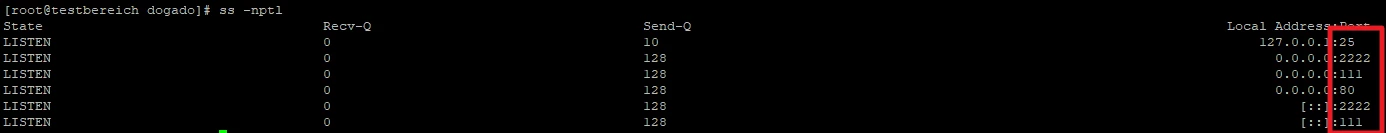 Nach der Installation schauen wir uns alle aktuell genutzten Ports an. Dies ist wichtig, da ihr diese Ports gegeben falls später wieder freigeben müsst. Gebt dazu folgenden Befehl ein: