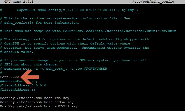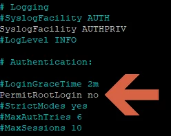 Nun wollen wir noch unseren SSH Port ändern. Dies ist nützlich, da dieser normalerweise immer auf Port 22 läuft. Im Internet gibt es viele automatische Scanner, welche genau diesen Port scannen. Indem wir diesen also abändern, werden wir bei diesen automatischen Scans nicht erkannt. Ebenfalls wollen wir noch den root Login deaktivieren. Dies bedeutet, dass sich der Benutzer „root“ später nicht mehr direkt per SSH anmelden kann. Dies gibt uns zusätzliche Sicherheit, da so ein Angreifer sich erst als Benutzer Zugang zu unserem Server verschaffen muss und dann erst Zugang zu unserem root Nutzer bekommen kann, wenn er das root Kennwort besitzt. Um die Änderungen durchzuführen, gebt ihr nun folgenden Befehl ein: