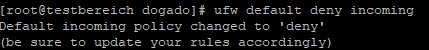 Nun legen wir fest, dass wir grundsätzliche alle eingehen Verbindungen blockieren wollen. Dazu gebt ihr folgendes ein: