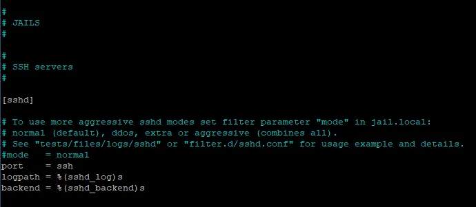cp /etc/fail2ban/jail.conf /etc/fail2ban/jail.local