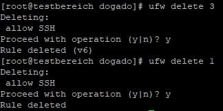 Ihr könnt die ufw Firewall mit folgenden Befehlen starten bzw. beenden: Starten der Firewall
