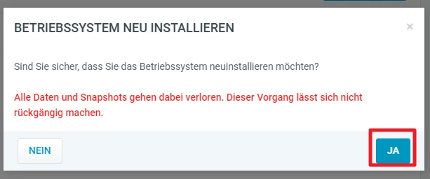 Nun klickt ihr auf „Betriebssystem installieren“. Ihr solltet dann folgende Meldung erhalten, die ihr mit „Ja“ bestätigt.