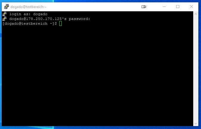 Mein Benutzer soll „dogado“ heißen. Also gebe ich folgendes ein: