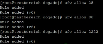 Nun erlauben wir also die aktuell genutzten Ports, damit unser Server später wieder korrekt funktioniert. Den Port 111 gebe ich hier nicht frei, da ich diese Funktion nicht benötige. Gebt dazu folgendes ein: