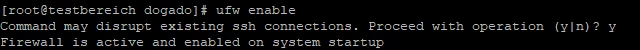 Wenn ihr die Firewall startet, erscheint folgenden Meldung. Diese müsst ihr mit „y“ bestätigen.