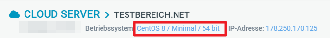 Klickt anschließend auf das aktuelle Betriebssystem eures Servers. Bei mir ist dies in dem Fall „CentOS 8 64 bit“.