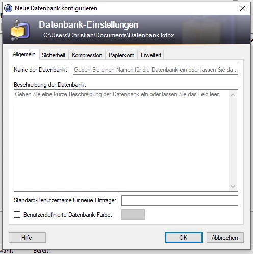 Nun erstellen wir unseren Passwort Tresor. Dieser Tresor ist eigentlich eine Datei, welche verschlüsselt ist und alle unsere Kennwörter beinhaltet. Diese Datei werden wir später auch synchronisieren, damit wir überall Zugriff auf unseren Tresor (Passwörter) haben. Mehr dazu findet ihr hier: KeePass Datenbank auf vServer/VPS speichern