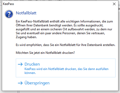 Nun habt ihr die Möglichkeit noch ein „Notfallblatt“ zu erstellen.