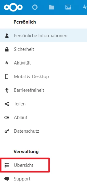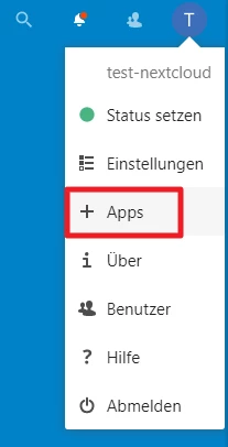 Hier zeige ich euch, wie ihr schnell weitere Apps / Erweiterungen in Nextcloud installieren könnt. Dazu klickt ihr wieder oben rechts auf den „Kreis“ und wählt „Apps“ aus.