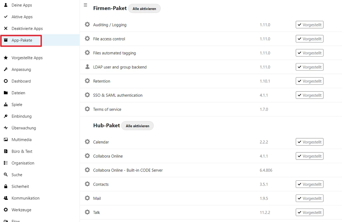 Unter „App-Pakete“ findet ihr alle Apps zum entsprechenden Thema.