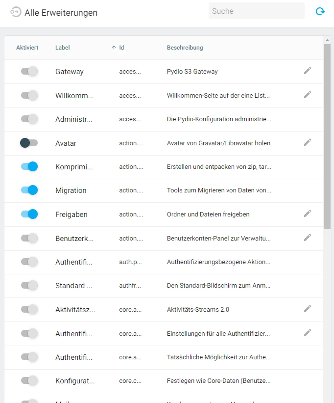 Hier seht ihr nun sehr viele Erweiterungen, welche ihr einfach per Klick aktivieren könnt.