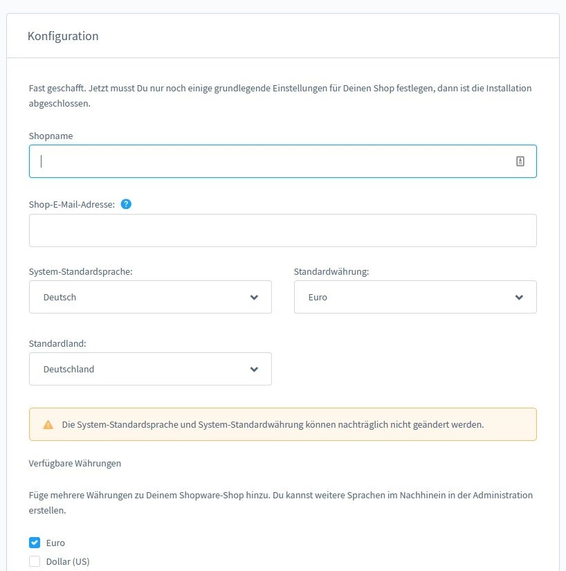 Jetzt nimmst du eine grundlegende Konfiguration des Shops vor, wie er später erscheinen soll.