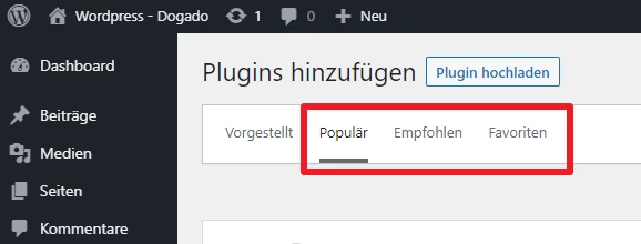 Hier könnt ihr jetzt auf „empfohlen“ oder „populär“ wechseln, um euch die beliebten Plugins anzeigen zu lassen.