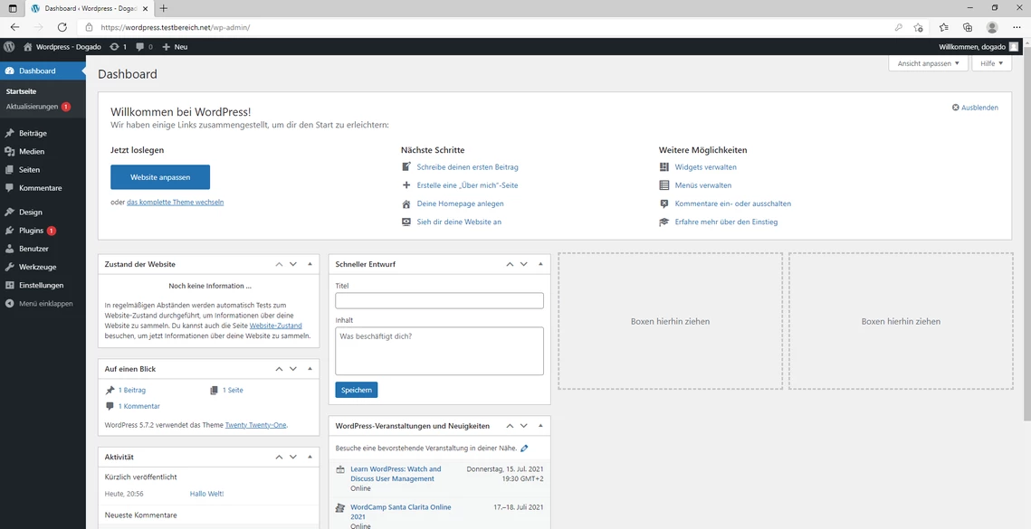 Wenn ihr Wordpress direkt auf eurer „Hauptdomain“ betreiben wollt, dann ändert ihr es folgendermaßen ab: