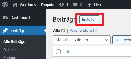 Um neue Beiträge zu erstellen, klickt ihr auf „Beiträge“.