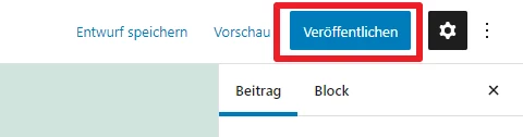 Mit einem Klick im oberen rechten Bereich auf „Veröffentlichen“ wird der Beitrag online gestellt.