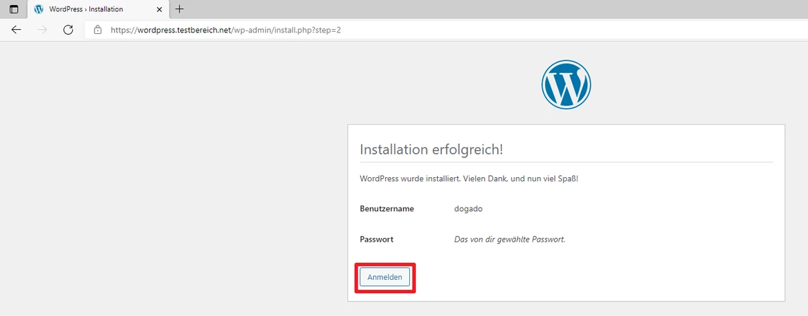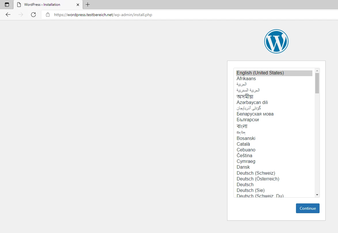 Geht nun mit eurem Webbrowser auf eure Webseite (z.B. wordpress.euredomain.de). Dort sollte nach einigen Sekunden folgendes zu sehen sein: