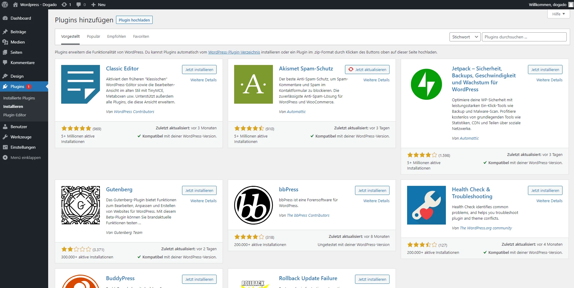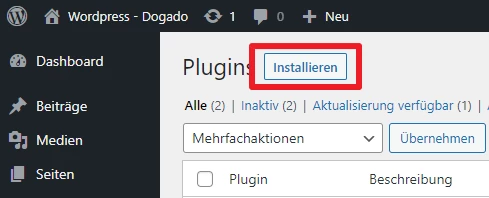 Wir klicken auf aber auf „Installieren“ um uns neue Plugins zu installieren.