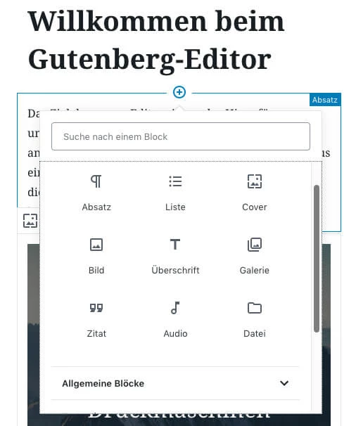 In diesem Demo-Beitrag kannst du jetzt die neuen Funktionen des Gutenberg-Editors nach Lust und Laune testen. Der größte Unterschied zum klassischen Editor sind die "Blöcke".