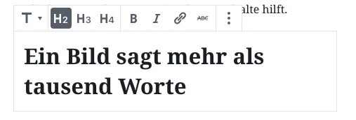 Jeder Block bekommt ein eigenes, dem Inhaltselement angepasstes Bearbeitungsmenü. Im folgenden Screenshot siehst du die Bearbeitungsmöglichkeiten für Überschriften: