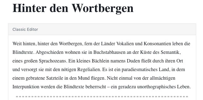Der folgende Screenshot zeigt einen mit dem klassischen Editor erstellten Inhalt im Gutenberg-Editor: