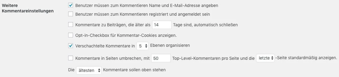 Verschachtelte Kommentare in WordPress aktivieren