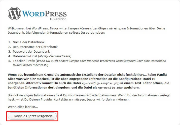 Dieser Schritt ist sehr simpel: Du wählst "...kann es jetzt losgehen!" aus, um auf die nächste Seite zu gelangen.