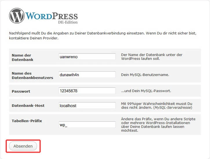 Schritt 5: MySQL-Zugangsdaten richtig eintragen